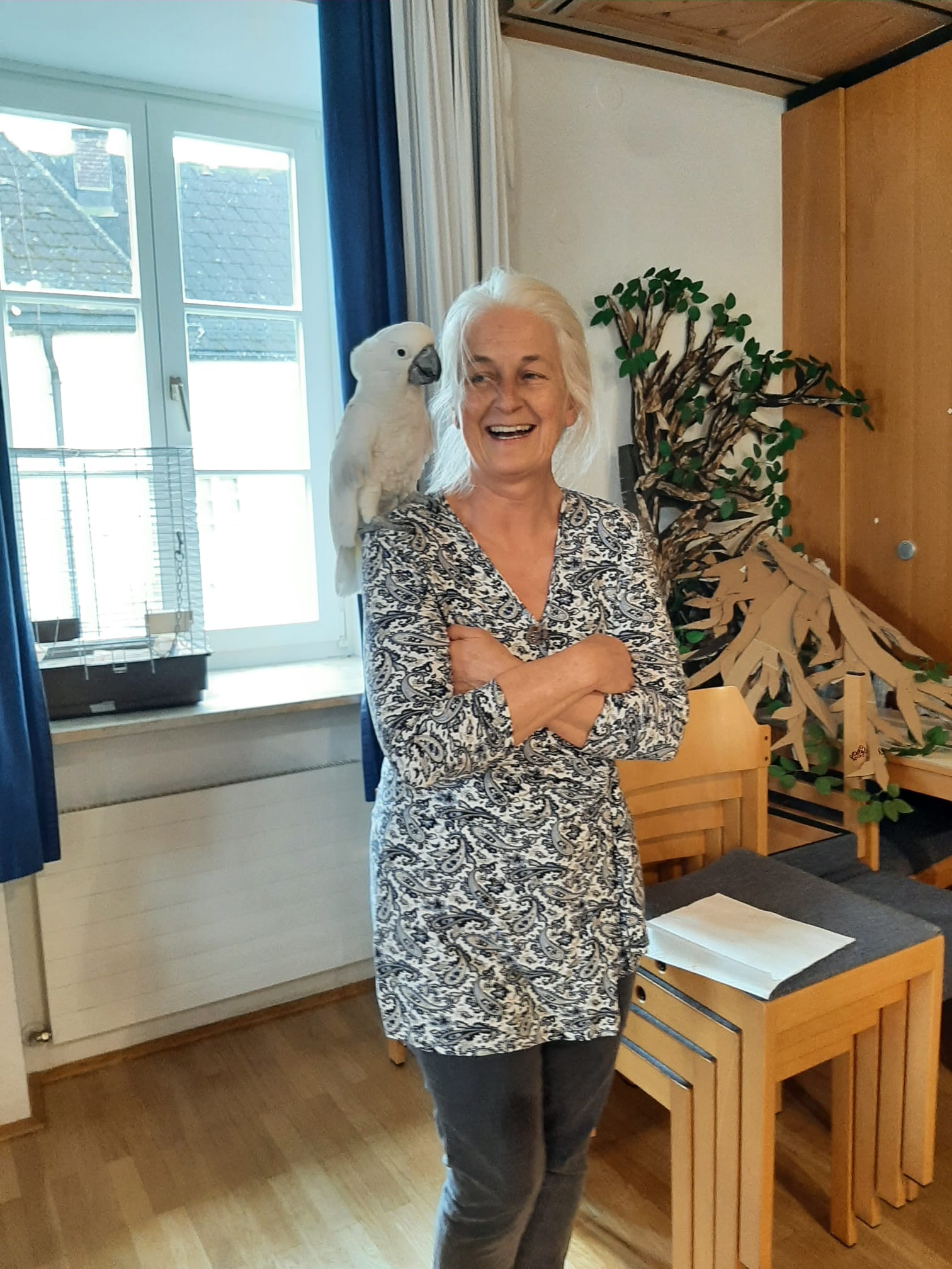 Kaffee trinken, plaudern, und einen bunten Vogel kennenlernen. Das war das Motto des letzten Pfarrkaffees!